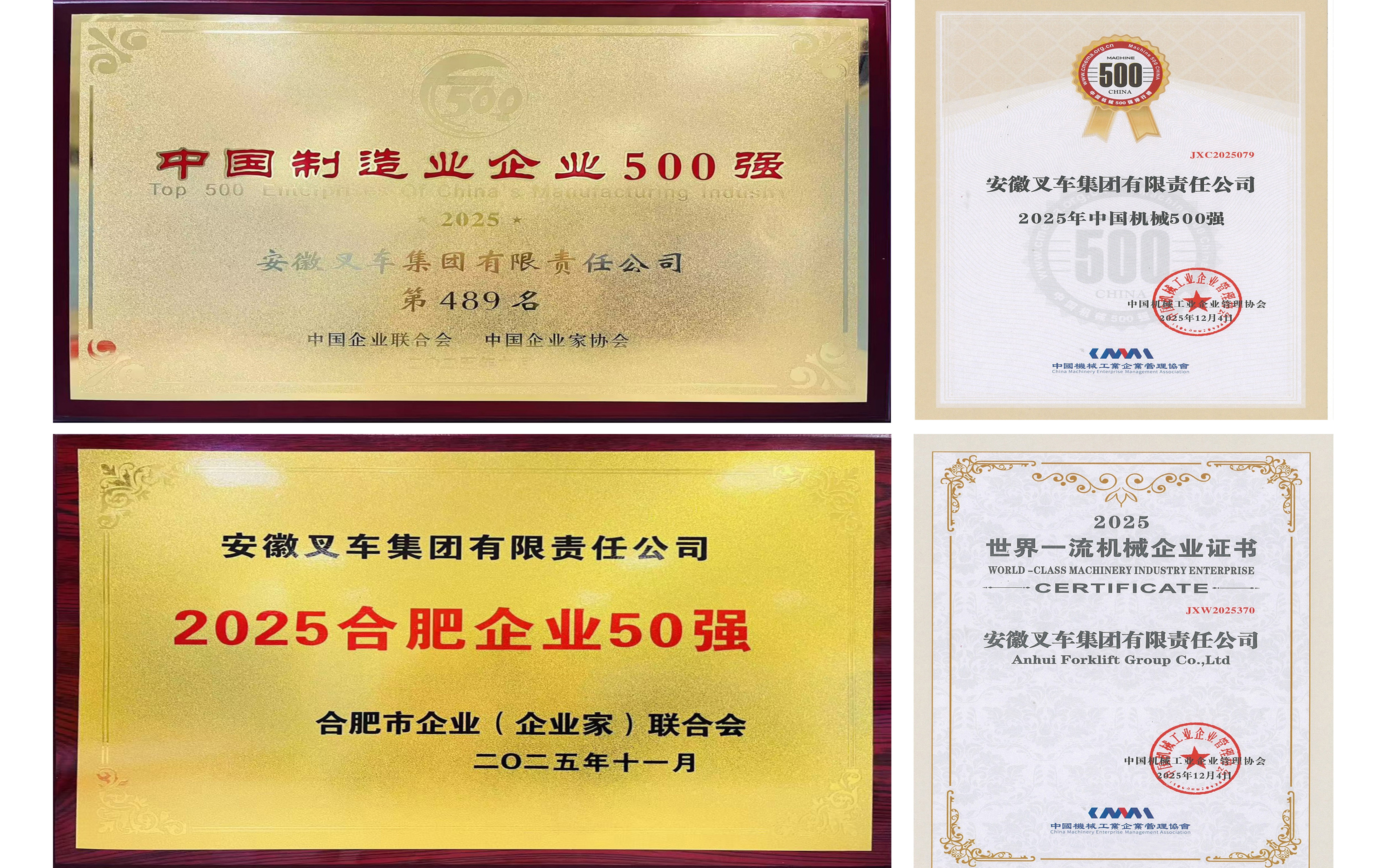 自2000年以來(lái),合力累計(jì)獲得科技進(jìn)步獎(jiǎng)70余項(xiàng),其中安徽省科技進(jìn)步獎(jiǎng)20余項(xiàng)(一等獎(jiǎng)4項(xiàng))。 合力擁有國(guó)家級(jí)企業(yè)技術(shù)中心和國(guó)家級(jí)工業(yè)設(shè)計(jì)中心,入選“創(chuàng)建世界一流專(zhuān)精特新示范企業(yè)”“國(guó)家制造業(yè)單項(xiàng)冠軍示范企業(yè)”名單,榮獲“全國(guó)供應(yīng)鏈創(chuàng)新與應(yīng)用示范企業(yè)”稱(chēng)號(hào)等。